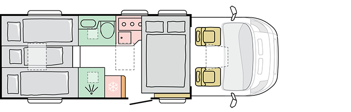 - Vietų skaičius – 5 sėdimos/5 miegamos